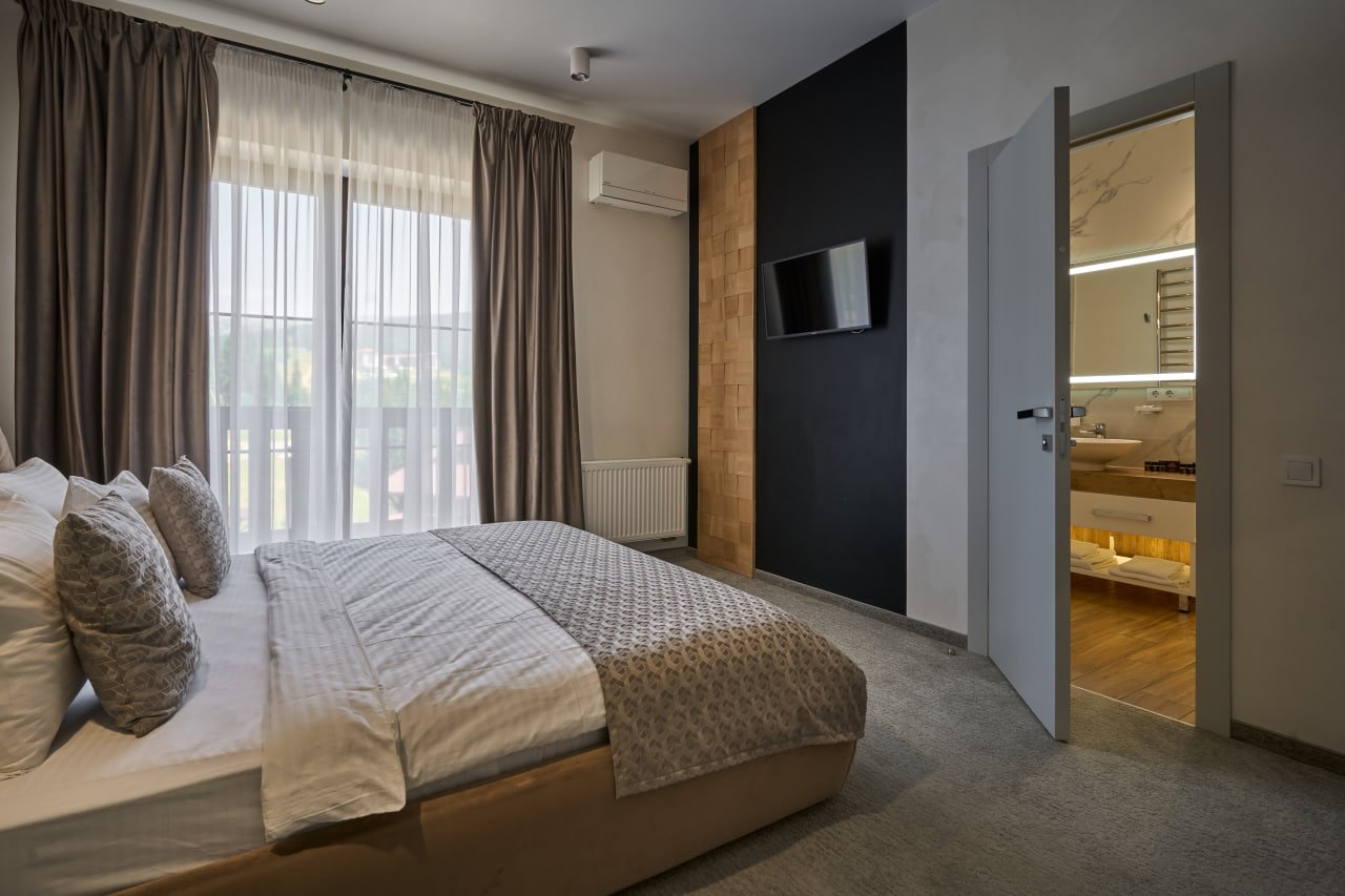 У кожній спальні є: 2-спальне ліжко, столик, шафа для одягу, телевізор. У двох кімнатах можливе додаткове розміщення, а в одній є балкон.